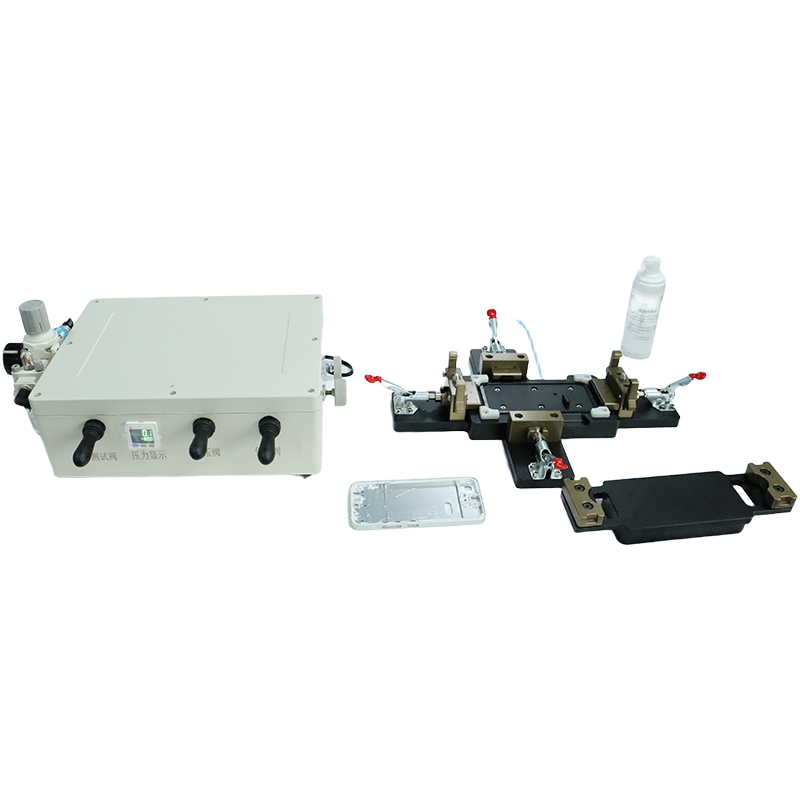 原理:将需要测试的产品部位在Debug治具上做相应的避空(观察窗),然后通过正负压控制盒在产品内部充进适当的压力,再将产品浸到水里看气泡,有气泡的地方就是产品的漏点所在。