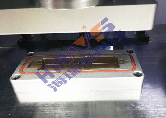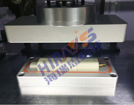 2. 检测时把需要检测的内芯放入模具中,上下模具闭合后将形成一个密封的检测空间,模具还能保护电池壳在检测中不受损害,一举解决了密封结构检测难题,还实现了无损检测。以下是检测细节。